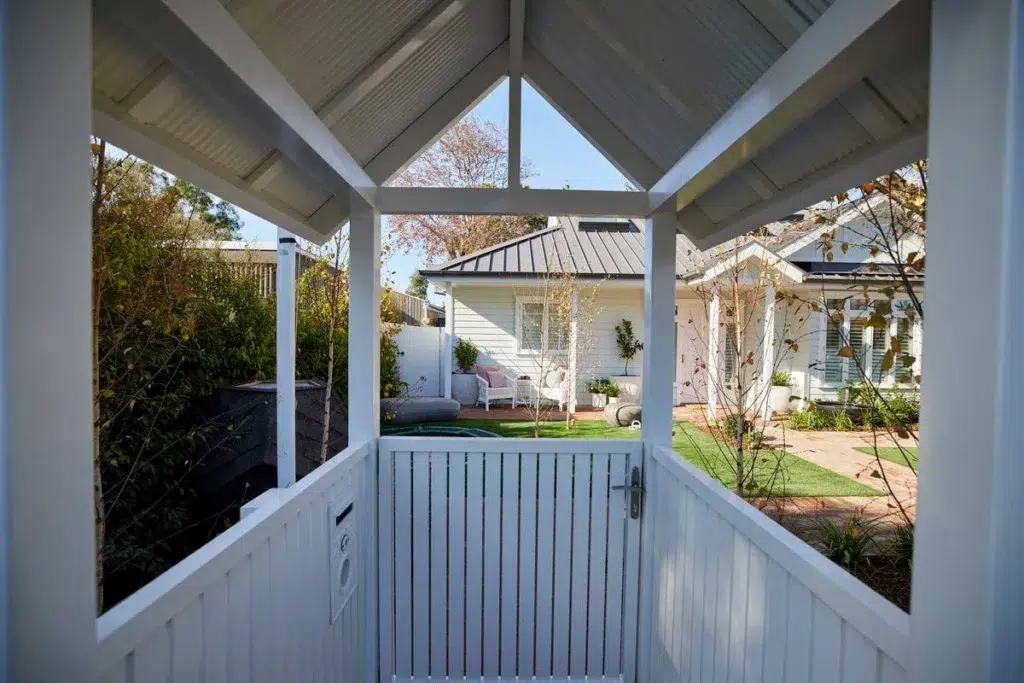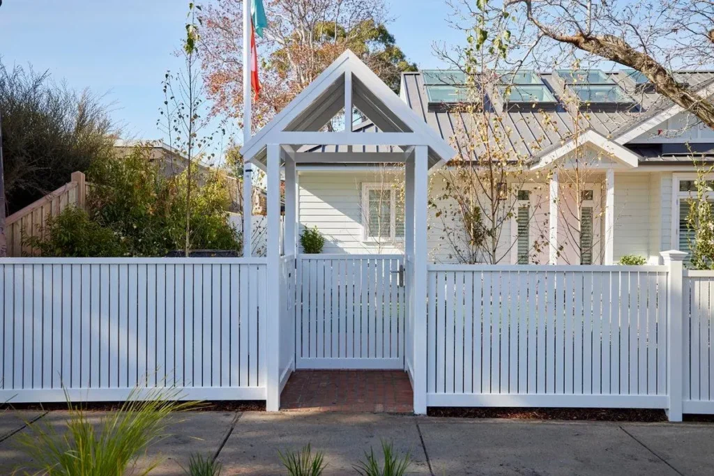 To achieve the classic “white picket fence” look without the maintenance, Boswen installed a modern aluminium fencing system.